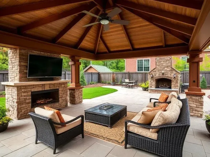 Maintenance depends on materials used. Stone patios need occasional power washing and resealing. Outdoor kitchens require regular cleaning of appliances and surfaces. We provide a detailed maintenance guide with every project to keep your space looking great for years.